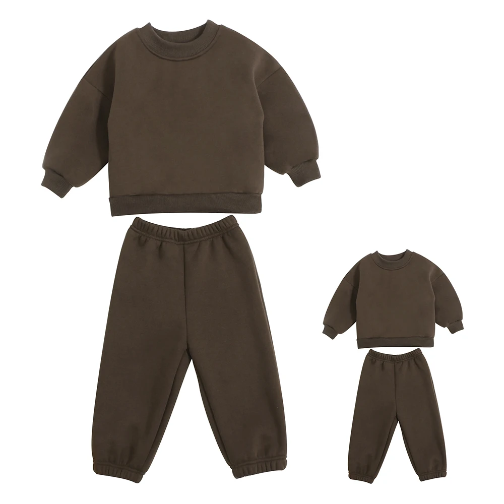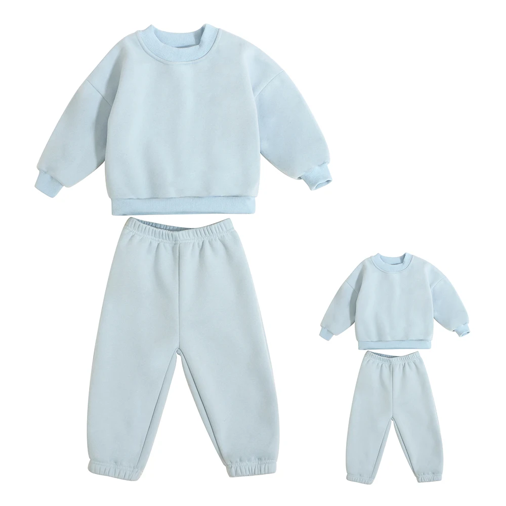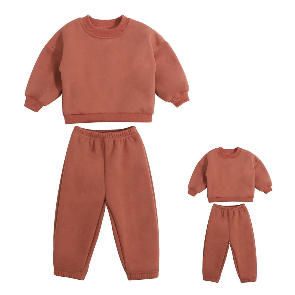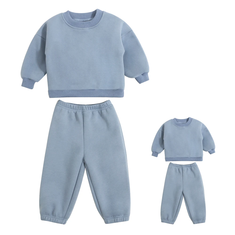 Custom Logo Oversized Fleece Crewneck Sweatshirt Two Piece Pants Set Unisex Tracksuits Parent-child Matching Set